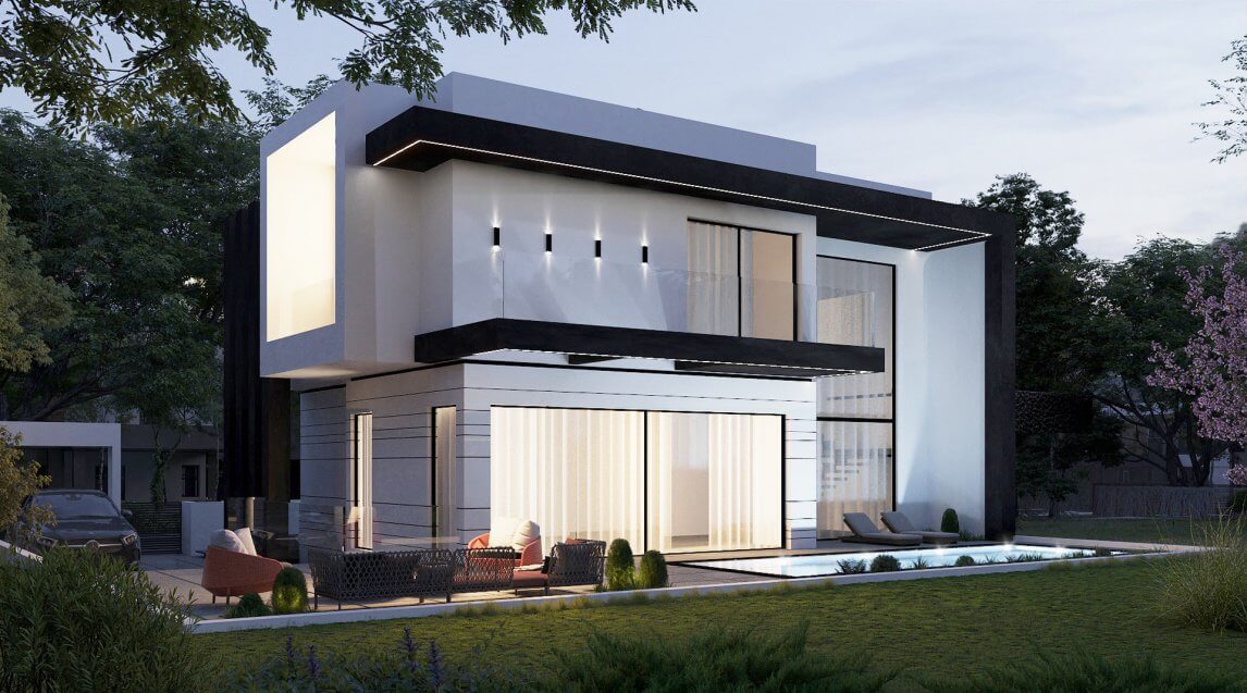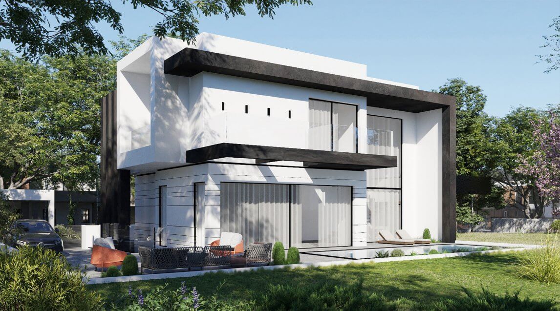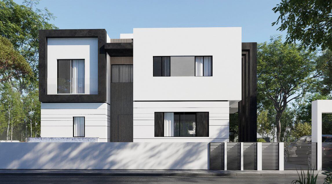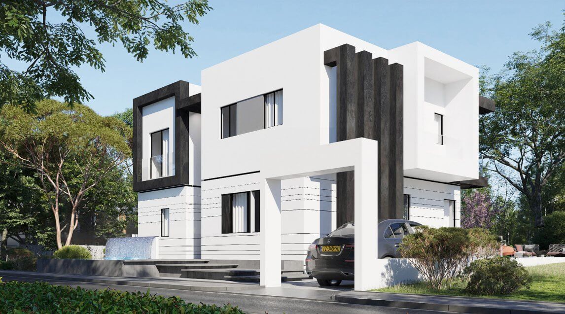 הרעיון היה ליצור סגנון מודרני וליצור בידול בארכיטקטורה לבית הדו הצמוד שיבנה.