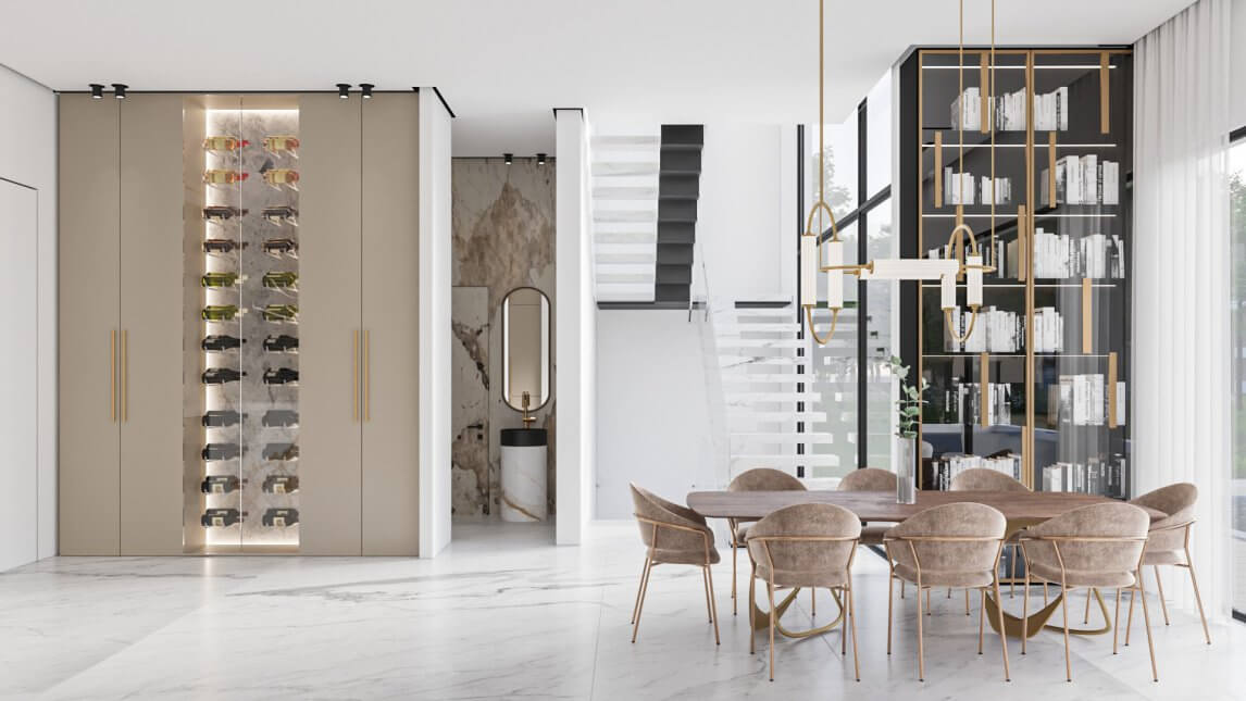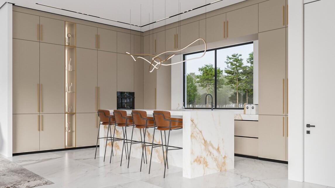 עיצוב הפנים לבית נעשה בצבעים בהירים ומאופיינים בצבעי חול ים.